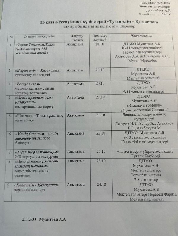 2025-2026 оқу жылының оқу-тәрбие жоспары
