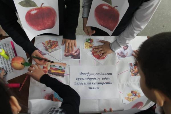 Оқушылардың дұрыс тамақтануына ықпал етіп, зиянды тағамдарды тұтынудың алдын алу мақсатында "Жасұлан" белсенділері 5-6 сыныптарда "Тиімдітамақтану - денсаулық кепілі" атты танымдық сайысын өткізді. Топтар мақал құрау, жоба қорғау, зиянды тағамдарды анықтау сияқты тапсырмаларды орындай келе, қазіргі кезде балалар жиі тұтынатын тағамдардың денсаулыққа әсері туралы ақпаратпен бөлісті, ой қорытты. Нәтижесінде 5ә сыныптың "Алмалар" тобы жеңіске жетті. Шараны ұйымдастырған аға тәлімгер Ақмөлдір Кушова.