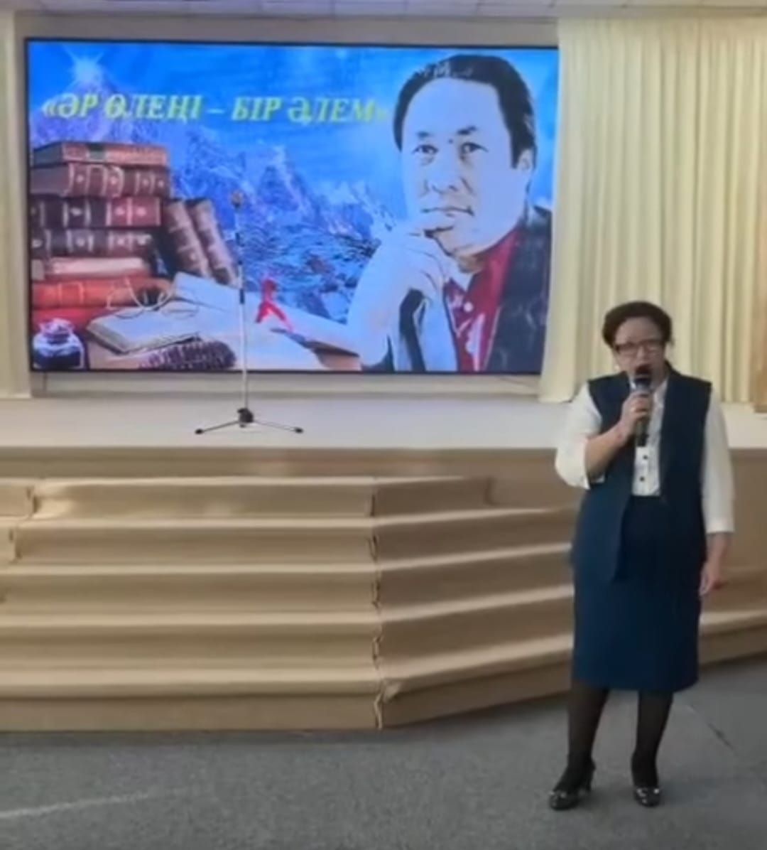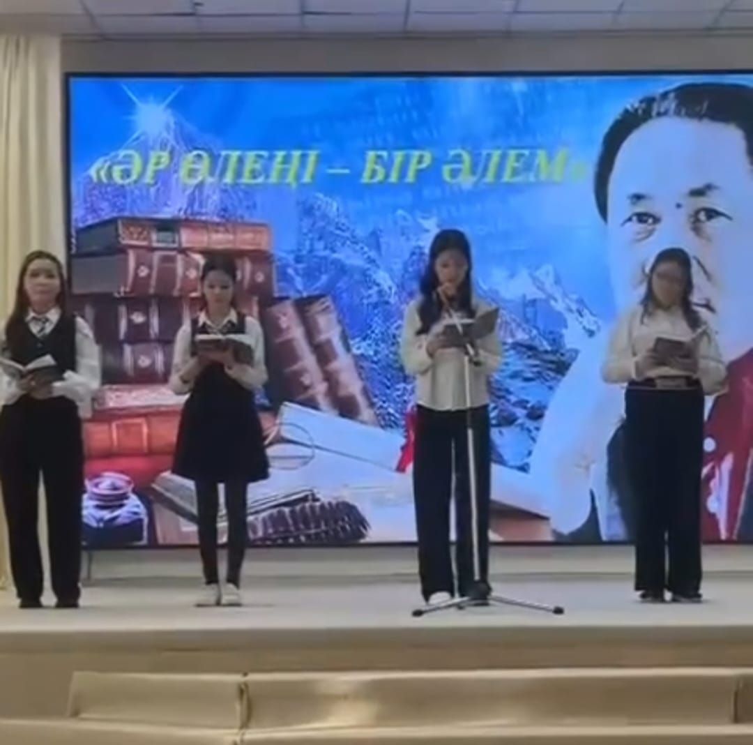 Ақиық ақын Мұқағали Мақатаевтың шығармашылығына арналған "Әр өлеңі бір әлем" тақырыбында әдеби—сазды кеш өткізілді. Мақсаты: соңынан өшпейтін із қалдырған ақынның өмірі мен шығармашылығына шолу жасап, өлеңдері мен әндері арқылы оқушыларды әсемдікке, елжандыққа тәрбиелеу, поэзияға құштарлығын арттыру. Шараға оқушылармен бірге гимназия ұстаздары Бибигуль Васильевна, Арайлым Қанатқызы ақынның өлеңдерін оқыса, Мұратбек Мұтанұлы ақынға арнауын паш етті. Сонымен қатар ақынның "Мен деп ойла"," Есіңе мені алғайсың"әндері орындалды.