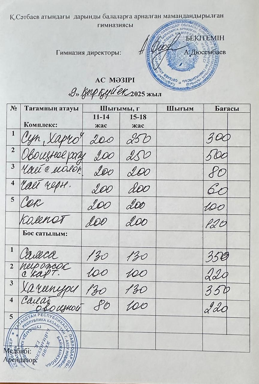 Ас мәзірі17.09.2025 |