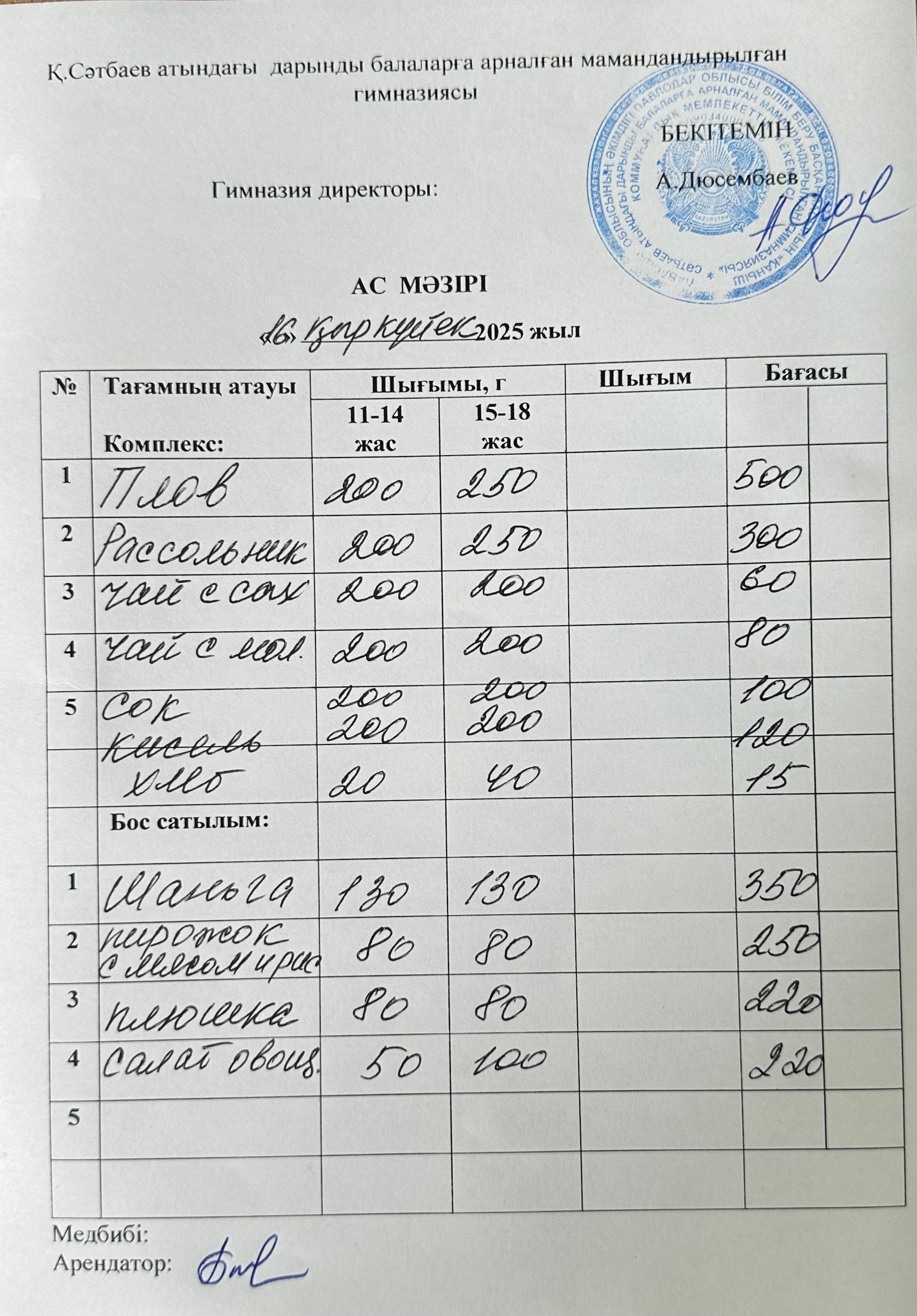 Ас мәзірі26.09.2025 |